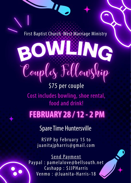 MARRIAGE MINISTRY BOWLING - 2/28 @12PM